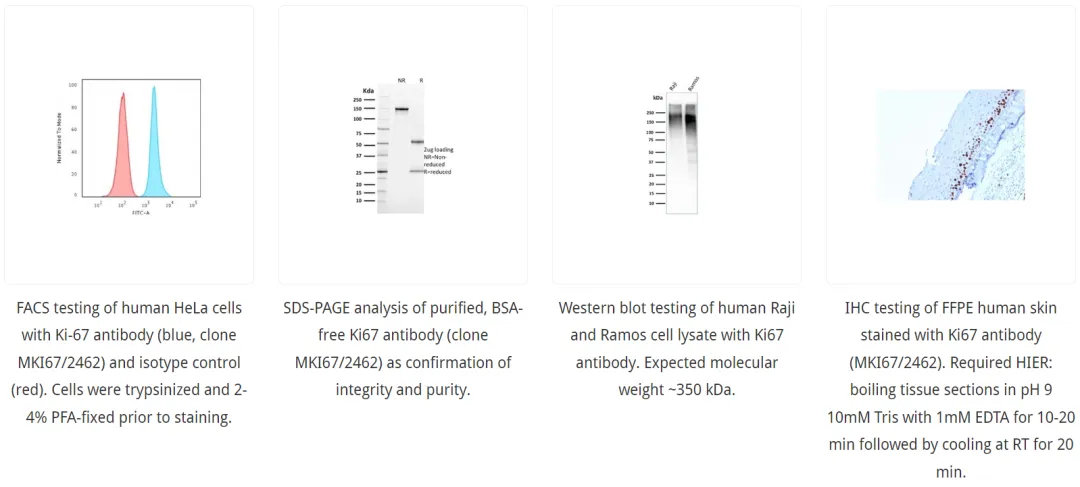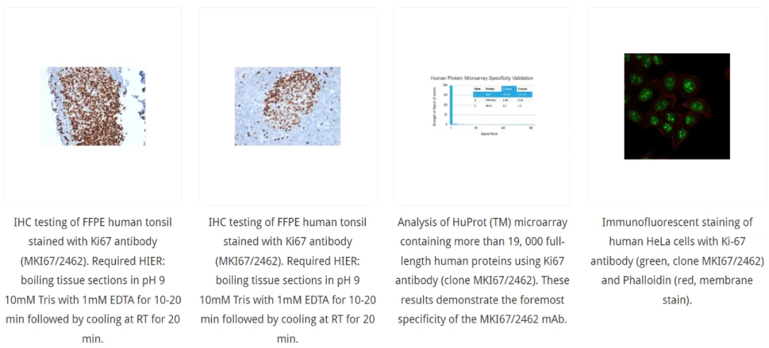 科学家还可以使用“蛋白质”来识别细胞增殖。有些特定的蛋白质只存在于细胞增殖过程中,而非增殖细胞中不存在。科学家可以使用“抗体”来识别这些蛋白质的存在。蛋白质检测具有许多优势,其中最大的优点是能够使用多种技术(即显微镜、IF、WB)进行检测。