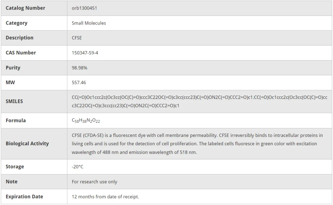 Biorbyt CFSE green fluorescent cellular dye (orb511134)