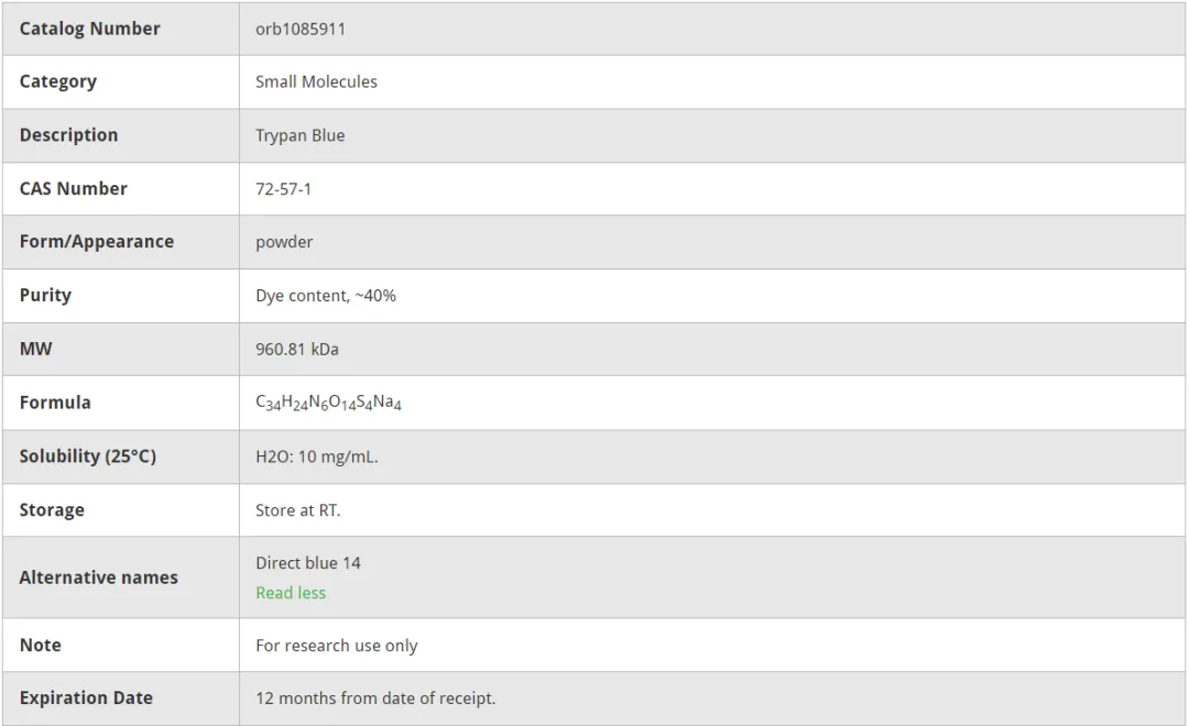 Biorbyt Trypan Blue(orb1085911)