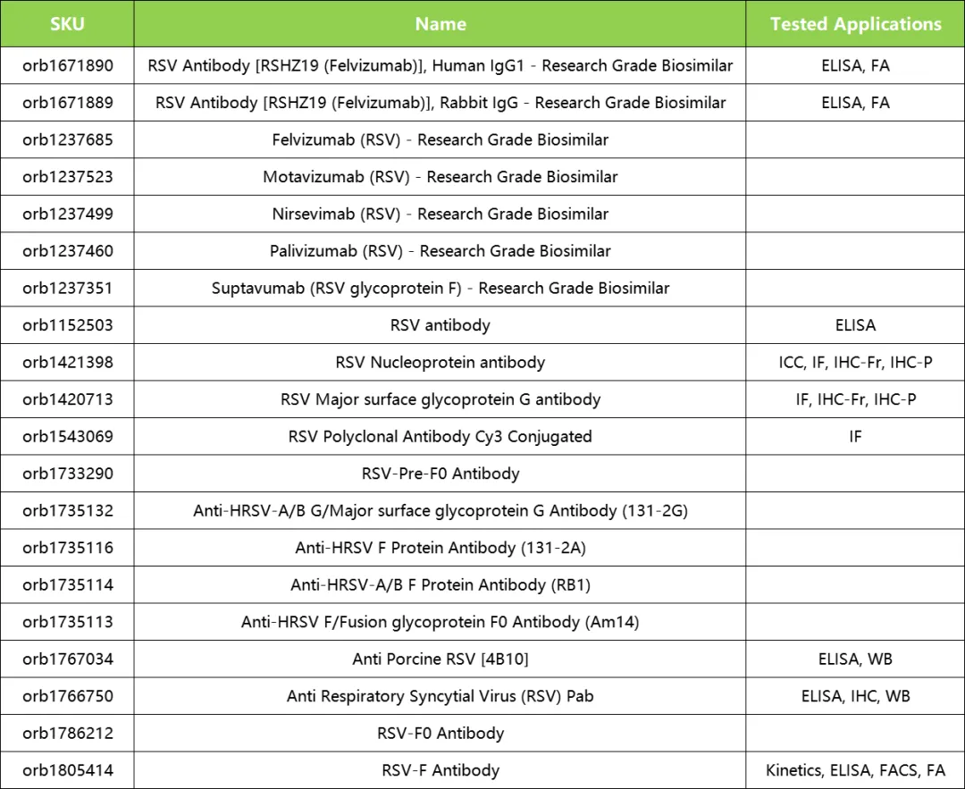 Biorbyt呼吸道合胞病毒科研用生物仿制药和抗体试剂: