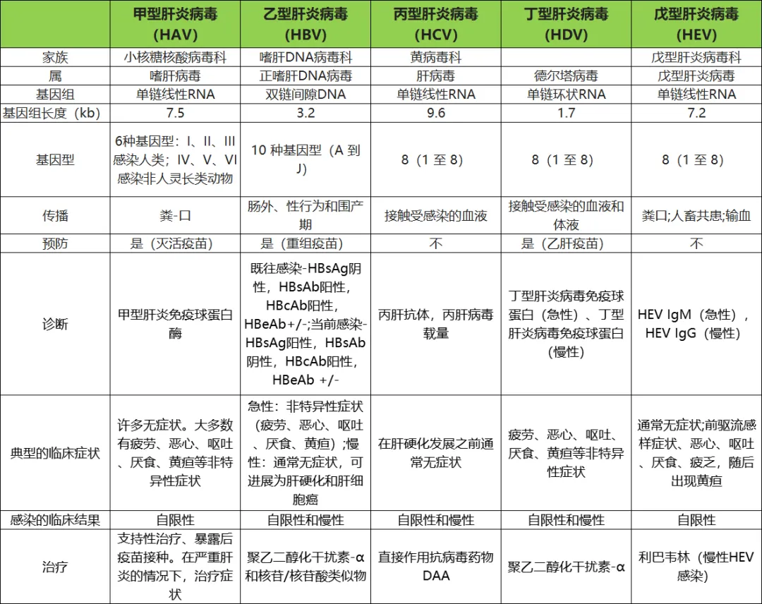 在全球范围内,甲型肝炎病毒(HAV)是急性病毒性肝炎的常见原因。甲型肝炎病毒 (HAV) 经常产生急性自限性肝炎,通常可自发消退。乙型肝炎、丙型肝炎、丁型肝炎病毒和偶尔的戊型病毒(HBV、HCV、HDV 和 HEV)可在慢性感染中发展。