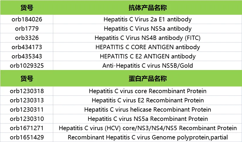 新型DAAs(直接抗病毒药物)已经显示出难以想象的治愈HCV的功效,以至于世界卫生组织提出到2030年消除HCV的可实现目标。为了实现这一共同目标,Biorbyt深入研究丙型肝炎病毒的各关键位点,为广大科研工作者提供丙型肝炎病毒相关优质的抗体和重组蛋白。