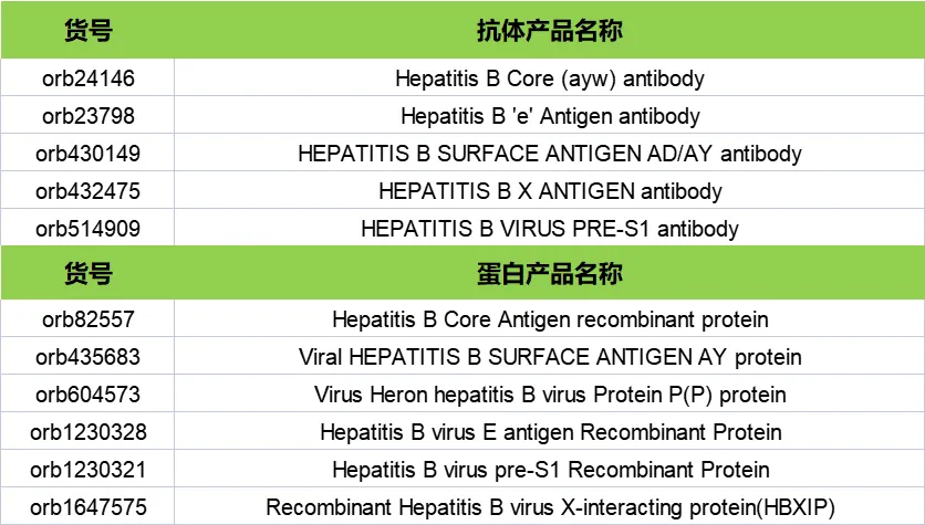 Biorbyt提供科研用的乙肝病毒核心抗原抗体、表面抗原抗体等,助力乙肝疾病的早日治愈。